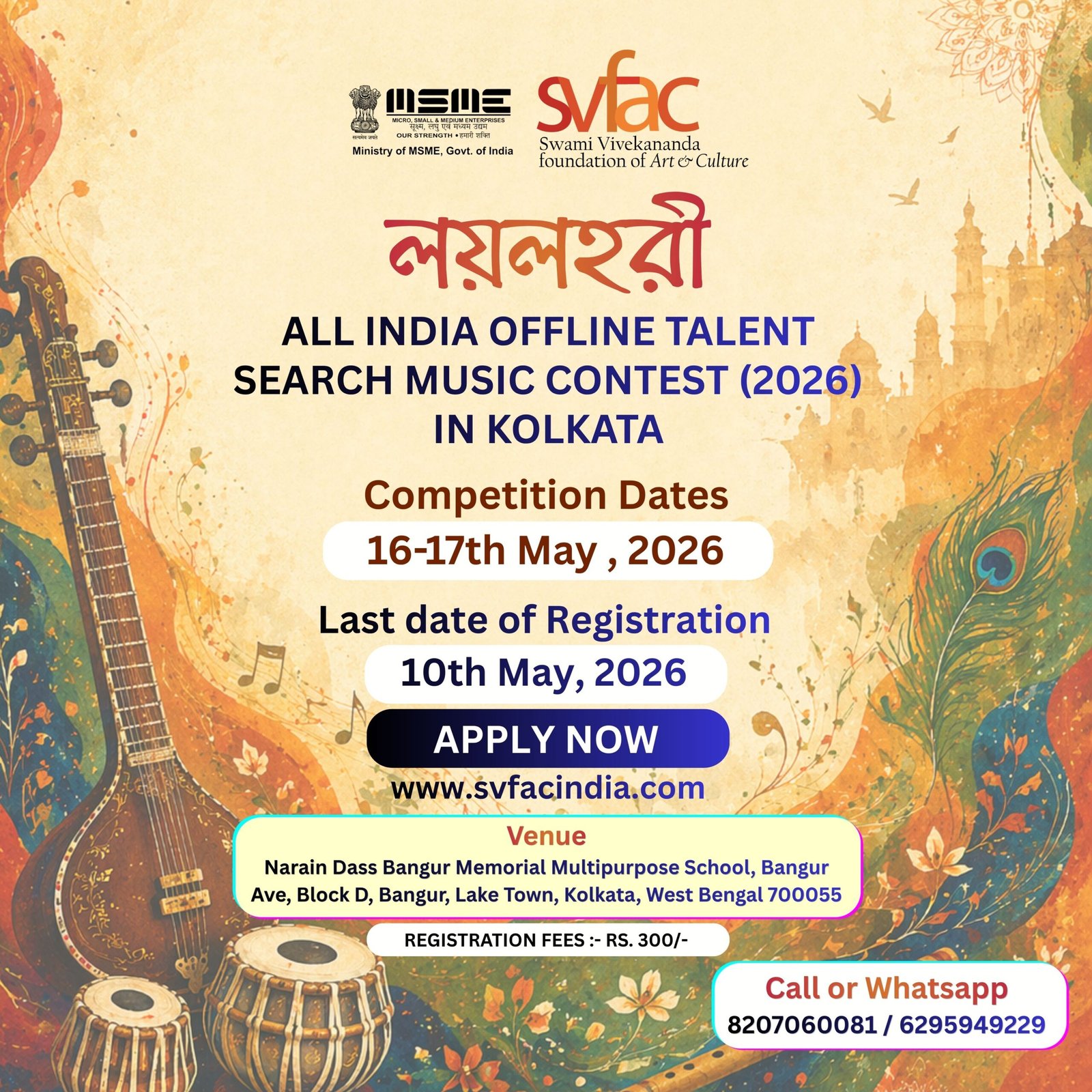 Participant NameGuardian NameEmail AddressClass/ last EducationAreaCityStateZIP / Postal CodeCountryAfghanistanAlbaniaAlgeriaAmerican SamoaAndorraAngolaAnguillaAntarcticaAntigua and BarbudaArgentinaArmeniaArubaAustraliaAustriaAzerbaijanBahamasBahrainBangladeshBarbadosBelarusBelgiumBelizeBeninBermudaBhutanBoliviaBosnia and HerzegovinaBotswanaBouvet IslandBrazilBritish Indian Ocean TerritoryBruneiBulgariaBurkina FasoBurundiCabo VerdeCambodiaCameroonCanadaCayman IslandsCentral African RepublicChadChileChina, People’s Republic ofChristmas IslandCocos IslandsColombiaComorosCongo, Democratic Republic of theCongo, Republic of theCook IslandsCosta RicaCroatiaCubaCuraçaoCyprusCzech RepublicCôte d’IvoireDenmarkDjiboutiDominicaDominican RepublicEast TimorEcuadorEgyptEl SalvadorEquatorial GuineaEritreaEstoniaEthiopiaFalkland IslandsFaroe IslandsFijiFinlandFranceFrance, MetropolitanFrench GuianaFrench PolynesiaFrench South TerritoriesGabonGambiaGeorgiaGermanyGhanaGibraltarGreeceGreenlandGrenadaGuadeloupeGuamGuatemalaGuernseyGuineaGuinea-BissauGuyanaHaitiHeard Island And Mcdonald IslandHondurasHong KongHungaryIcelandIndiaIndonesiaIranIraqIrelandIsraelItalyJamaicaJapanJerseyJohnston IslandJordanKazakhstanKenyaKiribatiKorea, Democratic People’s Republic ofKorea, Republic ofKosovoKuwaitKyrgyzstanLao People’s Democratic RepublicLatviaLebanonLesothoLiberiaLibyaLiechtensteinLithuaniaLuxembourgMacauMadagascarMalawiMalaysiaMaldivesMaliMaltaMarshall IslandsMartiniqueMauritaniaMauritiusMayotteMexicoMicronesiaMoldovaMonacoMongoliaMontenegroMontserratMoroccoMozambiqueMyanmarNamibiaNauruNepalNetherlandsNetherlands AntillesNew CaledoniaNew ZealandNicaraguaNigerNigeriaNiueNorfolk IslandNorth MacedoniaNorthern Mariana IslandsNorwayOmanPakistanPalauPalestine, State ofPanamaPapua New GuineaParaguayPeruPhilippinesPitcairn IslandsPolandPortugalPuerto RicoQatarReunion IslandRomaniaRussiaRwandaSaint HelenaSaint Kitts and NevisSaint LuciaSaint Pierre & MiquelonSaint Vincent and the GrenadinesSamoaSan MarinoSao Tome and PrincipeSaudi ArabiaSenegalSerbiaSeychellesSierra LeoneSingaporeSint MaartenSlovakiaSloveniaSolomon IslandsSomaliaSouth AfricaSouth Georgia and South SandwichSpainSri LankaStateless PersonsSudanSudan, SouthSurinameSvalbard and Jan MayenSwazilandSwedenSwitzerlandSyriaTaiwan, Republic of ChinaTajikistanTanzaniaThailandTogoTokelauTongaTrinidad and TobagoTunisiaTurkeyTurkmenistanTurks And Caicos IslandsTuvaluUS Minor Outlying IslandsUgandaUkraineUnited Arab EmiratesUnited KingdomUnited States of America (USA)UruguayUzbekistanVanuatuVatican CityVenezuelaVietnamVirgin Islands, BritishVirgin Islands, U.S.Wallis And Futuna IslandsWestern SaharaYemenZambiaZimbabweMobile No.Whatsapp No.GenderFemaleMaleOtherGroupAadyaMandraMadhyaTaraMusic CategorySemi Classical Thumri/Dadra/Kajri/Tappa/RagpradhanBhajanKhayalRabindra SangeetNazrul GeetiTablaDate of BirthGuru NameGuru Phone No.Guru AddressUpload your photoChoose FileNo file chosenDelete uploaded fileConsent *Yes, I agree with the privacy policy and terms and conditions.Submit More Details of Competition